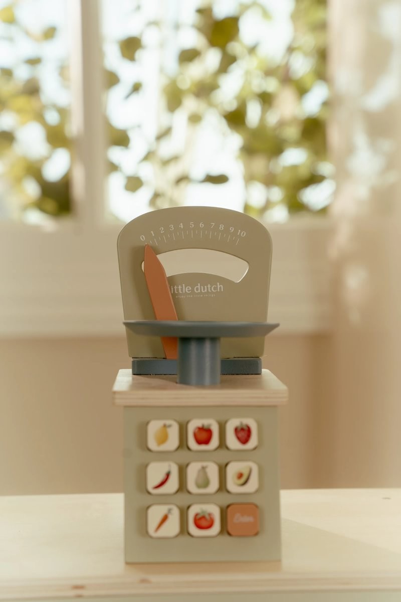 La Balanza FSC de Little Dutch es el accesorio ideal para completar cualquier cocinita infantil. Fabricada en madera FSC y diseñada con un estilo encantador, permite a los pequeños chefs y panaderos pesar sus ingredientes como en una cocina real. Al colocar los alimentos sobre la plataforma, la aguja se mueve indicando el peso, añadiendo realismo y diversión al juego simbólico. Los botones ilustrados aportan un toque extra de detalle que invita a imaginar, experimentar y crear.