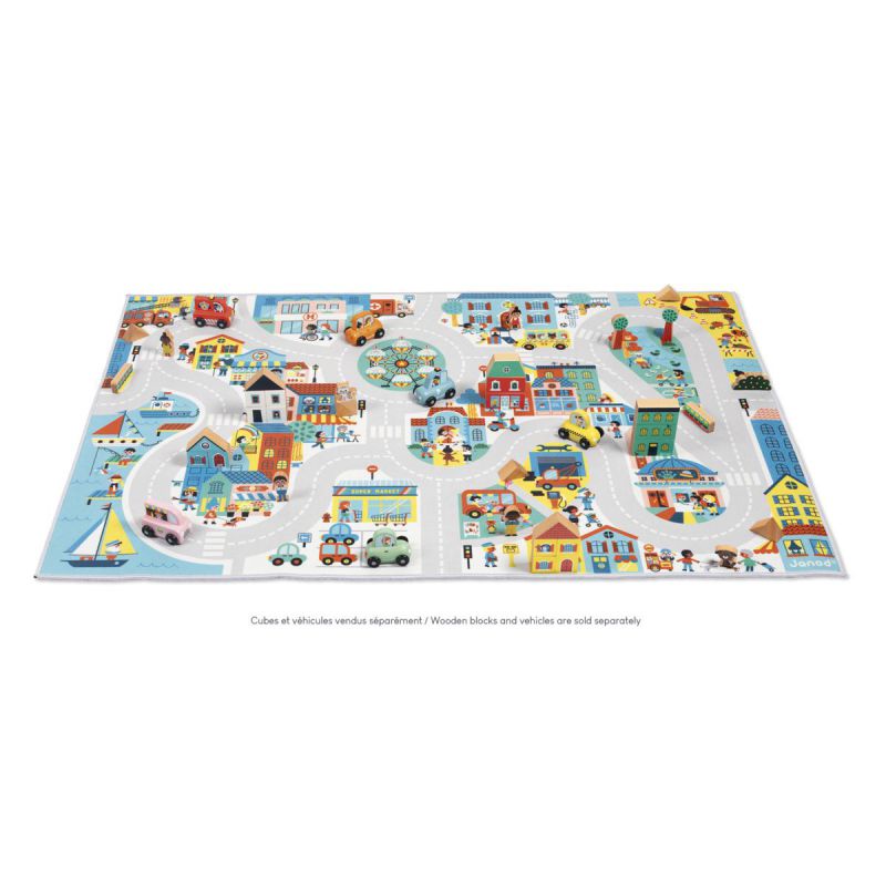 ¡Bienvenidos a la ciudad! Esta colorida alfombra de juego invita a los niños a recorrer sus calles, descubrir cada barrio y dejar volar la imaginación creando historias sin fin. Además de fomentar la creatividad, es un divertido juego educativo que estimula la observación y amplía el vocabulario. Los pequeños podrán buscar personajes y elementos ocultos, como el cartero, mientras aprenden sobre profesiones, colores y emociones.
