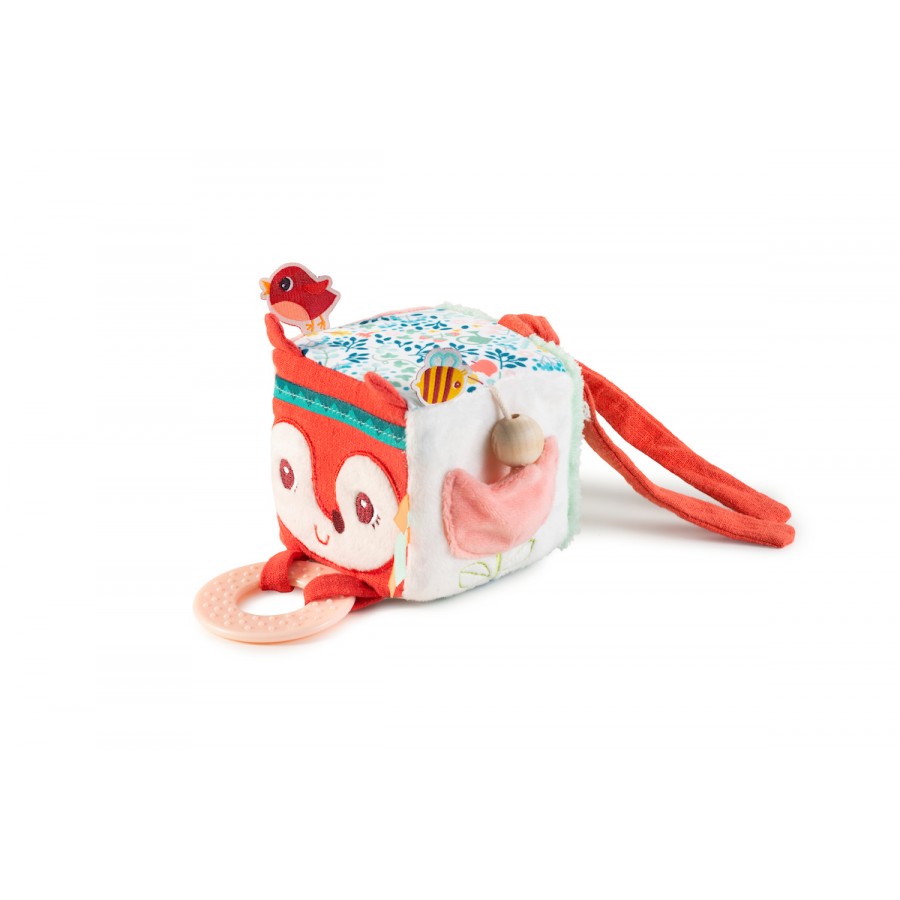 En este cubo con diferentes motivos y texturas, hay mucho que experimentar en cada lado. Una fuente de inspiración y estímulo para los pequeños exploradores.