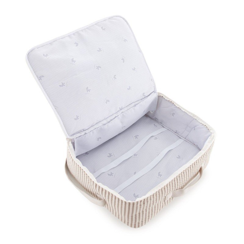 La maleta clínica de la colección Derby Beige de Cambrass es el accesorio ideal para llevar al hospital en el momento del nacimiento o para utilizar en escapadas de fin de semana. Su diseño amplio y práctico permite guardar todo lo necesario para la mamá y el bebé, manteniendo la organización gracias a las gomas interiores que ajustan la carga de forma segura.