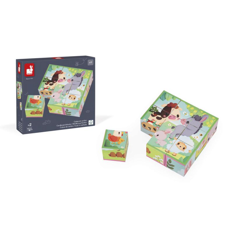 ¡Descubre la vida en la granja con este encantador set de cubos de Janod! Este juego incluye 9 cubos de cartón resistente que permiten formar 6 coloridas escenas con los animales más entrañables del campo: la oveja, el conejo, el burro, la vaca, la gallina con su pollito y una escena grupal con todos ellos.