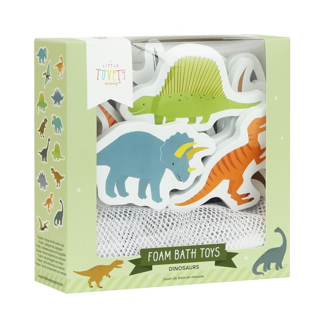 Convierte la hora del baño en un momento de exploración jurásica con este set de divertidos juguetes de espuma. Diseñados para estimular la imaginación mientras el bebé se baña, las 14 piezas de dinosaurios se adhieren fácilmente a las paredes o azulejos mojados y pueden guardarse en la práctica red incluida cuando se termina el juego.