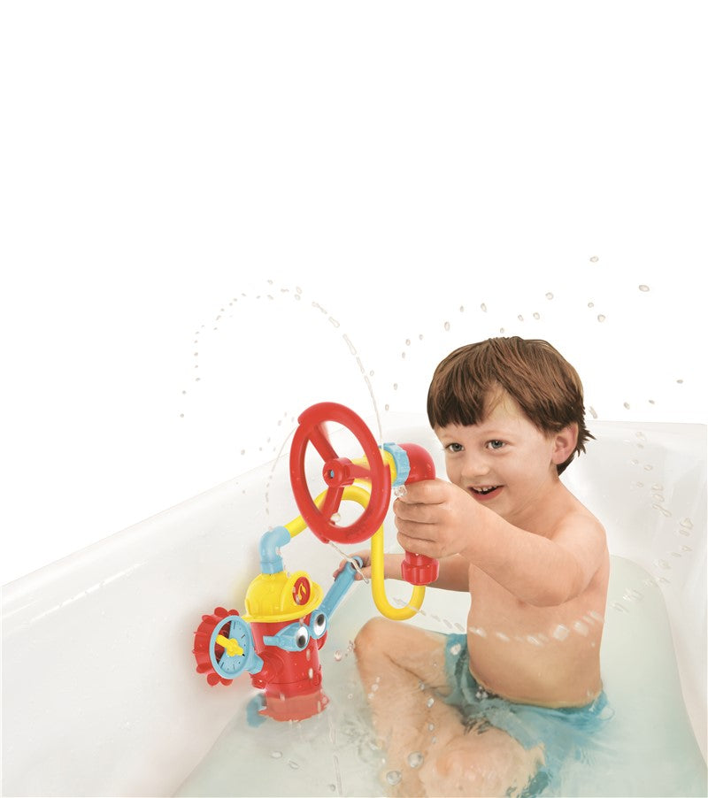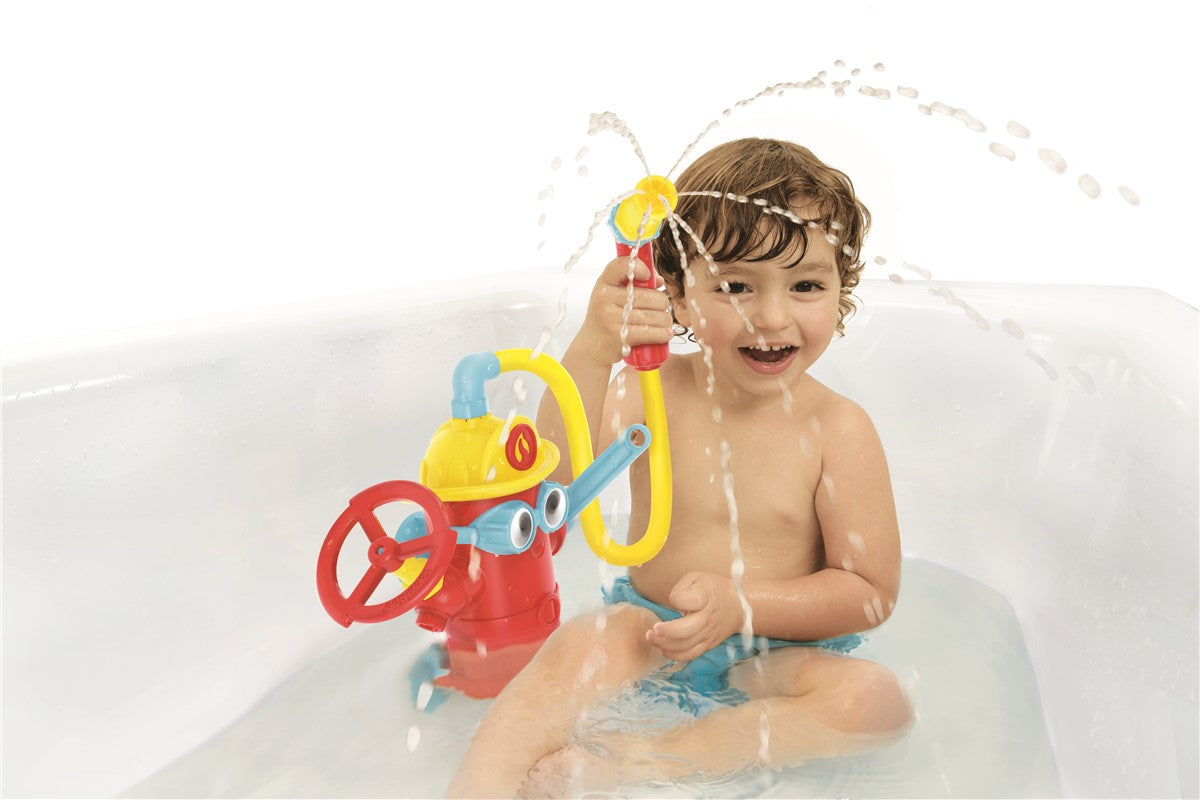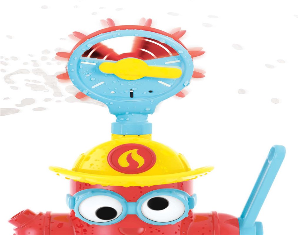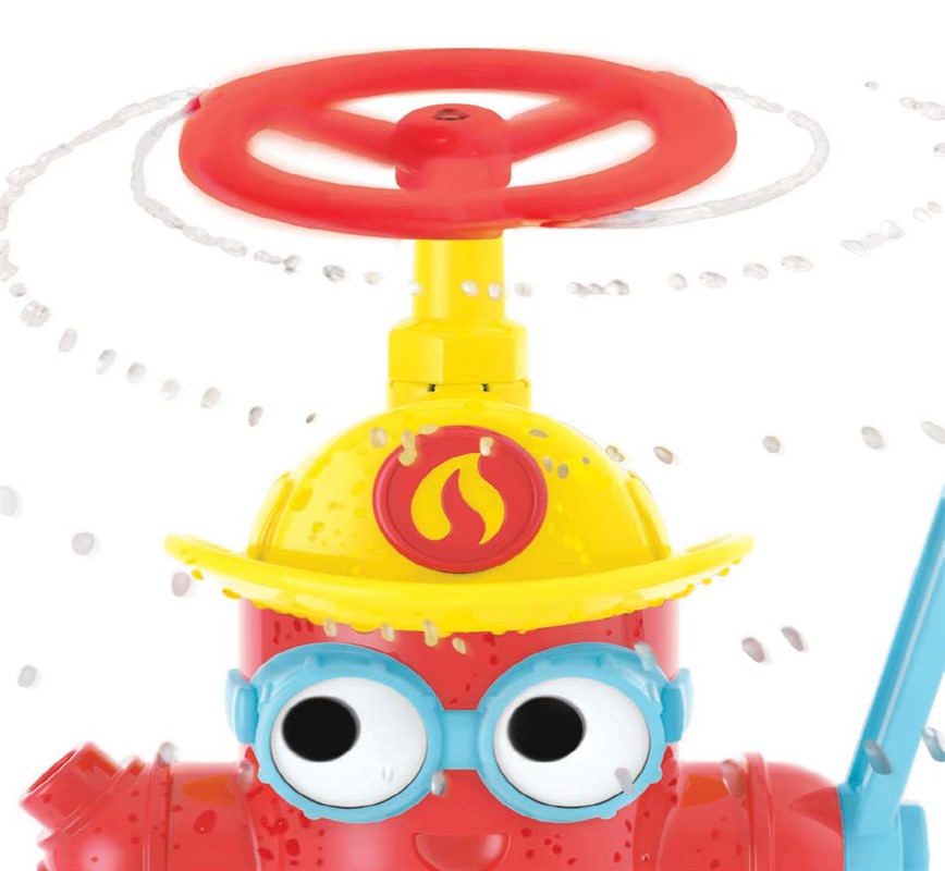 Un juguete de baño a pilas con forma de boca de riego que se adhiere fácilmente con ventosas a la bañera. ¡Tira de la palanca para activar la bomba de agua circulante, que impulsa el agua de la bañera creando una corriente sin fin y sin desperdiciar agua del grifo! Los ojos de Freddy giran cuando el agua comienza a salir de su casco. Incluye 4 accesorios de bombero intercambiables, súper divertidos y fáciles de manejar, que pueden conectarse rápidamente tanto al casco como al extremo de la manguera. Los accesorios intercambiables se unen al cuerpo de la boca de incendios para facilitar el juego y el almacenamiento.