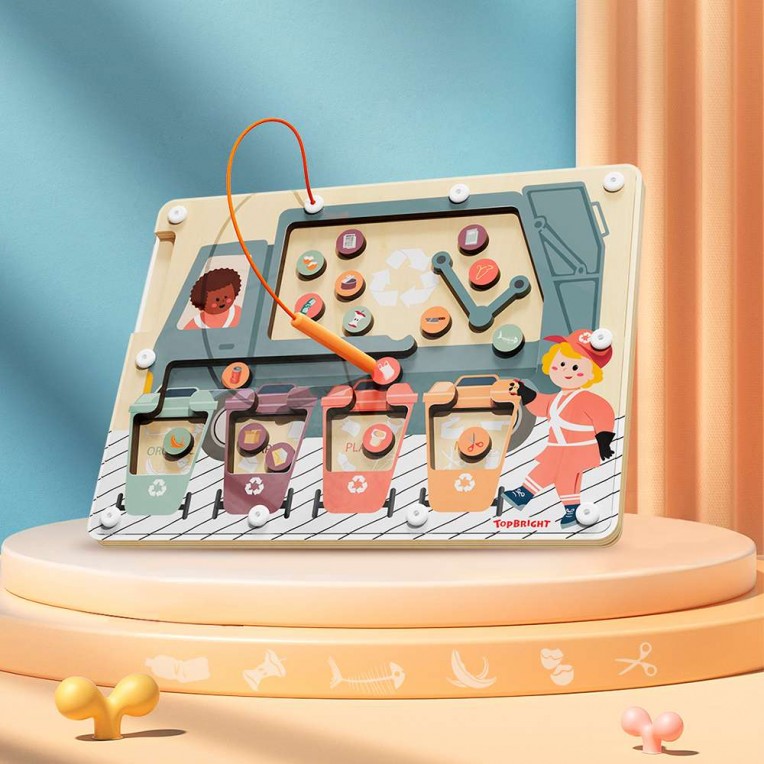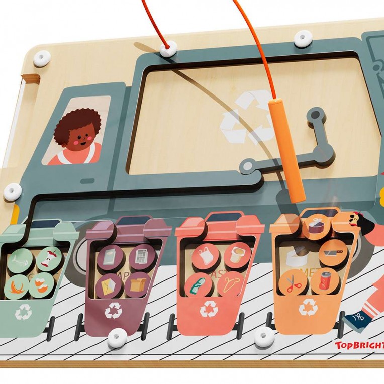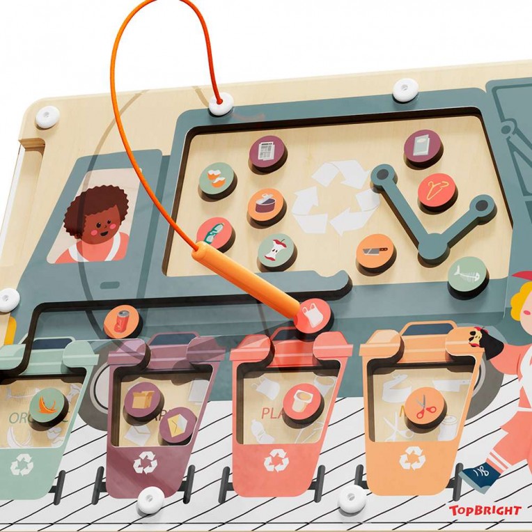 ¿Dónde va cada residuo? Con el juego de clasificación de residuos de TopBright, los niños aprenderán de forma divertida los conceptos básicos del reciclaje y el cuidado del medio ambiente. Gracias al lápiz magnético, podrán guiar cada pieza y clasificarla correctamente en el contenedor correspondiente: metal, papel, plástico u orgánico.