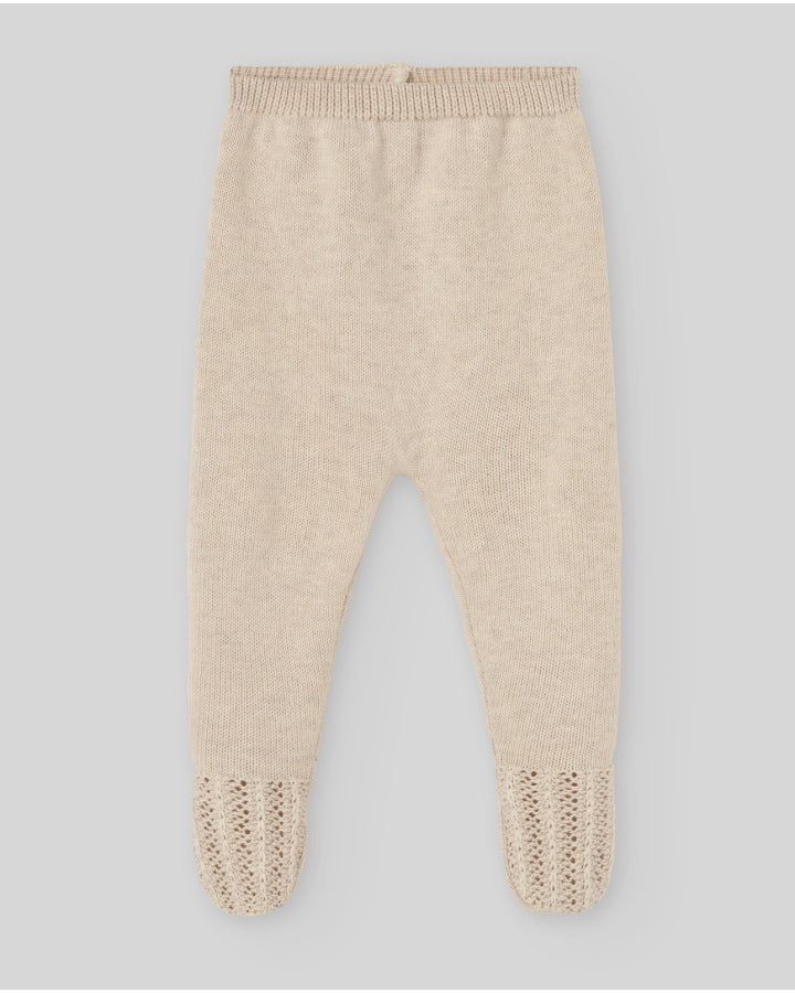 Polaina que forma parte del conjunto ALEGRÍA, con cintura elástica y pies cerrados. Ideal para mantener abrigado al bebé con estilo coordinado.