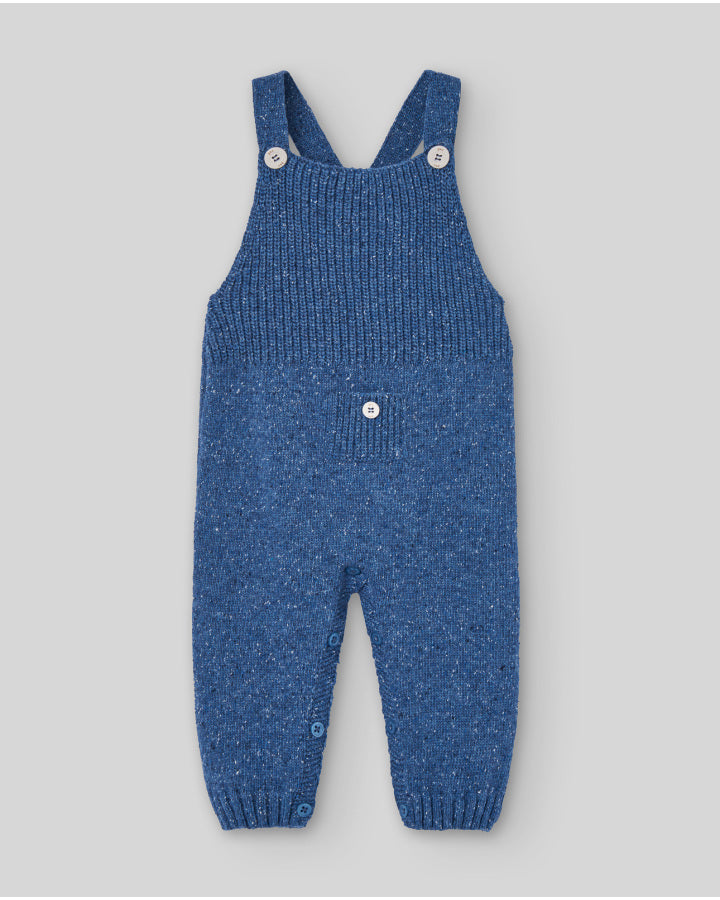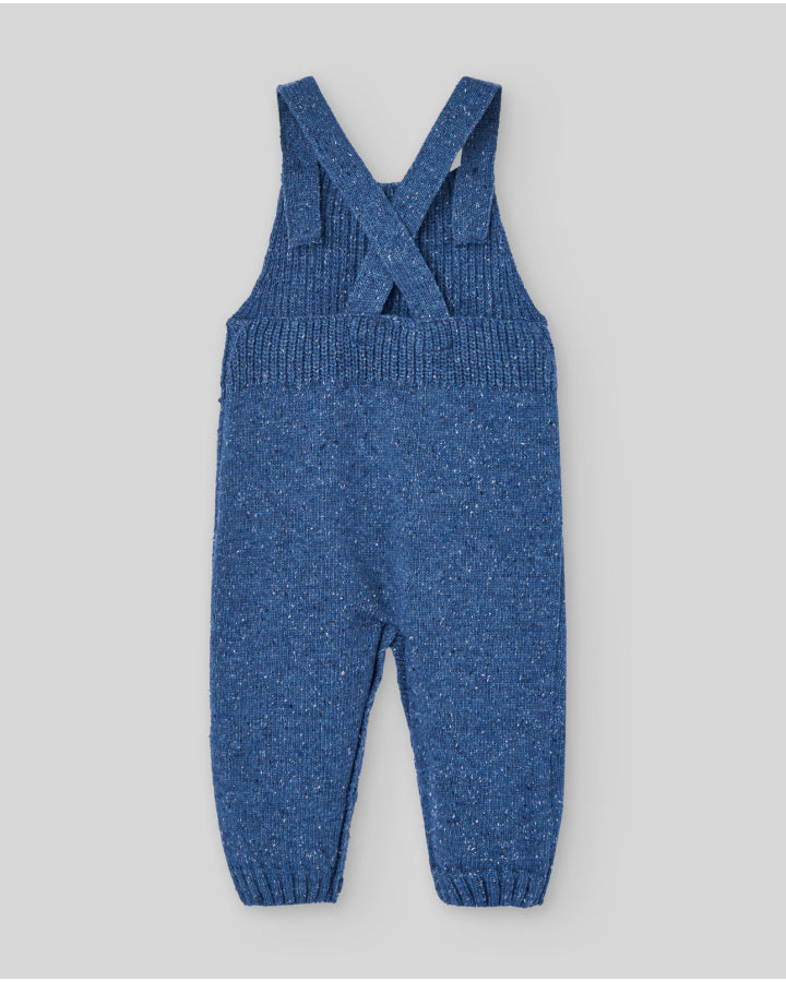 Peto largo de punto sin pie con tirantes cruzados en la espalda. Diseño cómodo y calentito, pensado para bebés en la colección NOGAL.