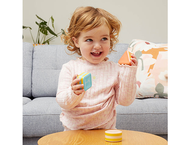 El conjunto Shape Shakers está compuesto por tres instrumentos apilables que no solo permiten a los niños explorar sonidos, sino que también fomentan el juego creativo. Hechos de bioplástico, son duraderos y seguros, permitiendo a los pequeños mover y sacudir estos instrumentos mientras se divierten. Además, los niños pueden apilar los agitadores como bloques para mejorar sus habilidades motrices.