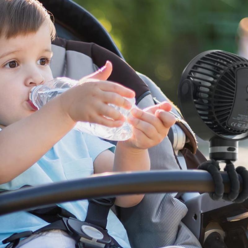 Gracias a su batería de gran capacidad y su sistema de sujeción flexible, podrás colocarlo fácilmente en el cochecito, la cuna, la silla de coche o incluso utilizarlo en casa. Una solución práctica para evitar el calor sin complicaciones.