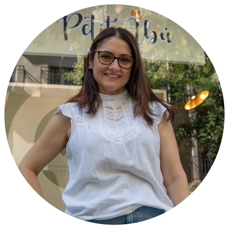 20 años de experiencia en la comercialización de productos infantiles, sus inicios en este sector se remontan al año 2000 cofundando Enrredos Shop, que se dedica a la comercialización de prendas de vestir y calzados para niños. En Petit Abú es la encargada del merchandising además de la venta.