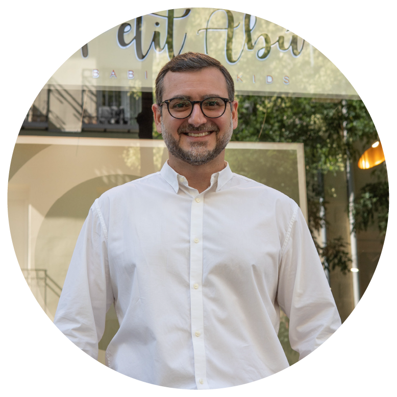 Tiene más de 15 años de experiencia en el sector, fue Co fundador de Dou baby, empresa dedicada a la comercialización de mobiliario infantil. En Petit Abu es el encargado del almacén y de la logística, además de la venta en tienda.