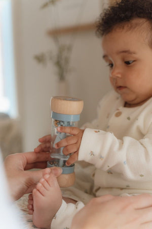 El sonajero de lluvia Forest Friends de Little Dutch es un juguete sensorial ideal para bebés desde los primeros meses de vida. Al girarlo, las bolitas de colores caen suavemente a través de un tubo con aberturas, haciendo girar una pequeña hélice y generando un sonido relajante similar al de la lluvia.