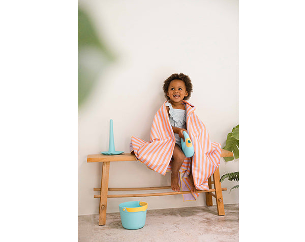 Fabricada en microfibra de secado rápido, ligera y compacta, es perfecta para llevar a la playa, al parque o a cualquier escapada. Incluye corchetes en la talla mediana para convertirla en una capa y un lazo para colgar fácilmente.